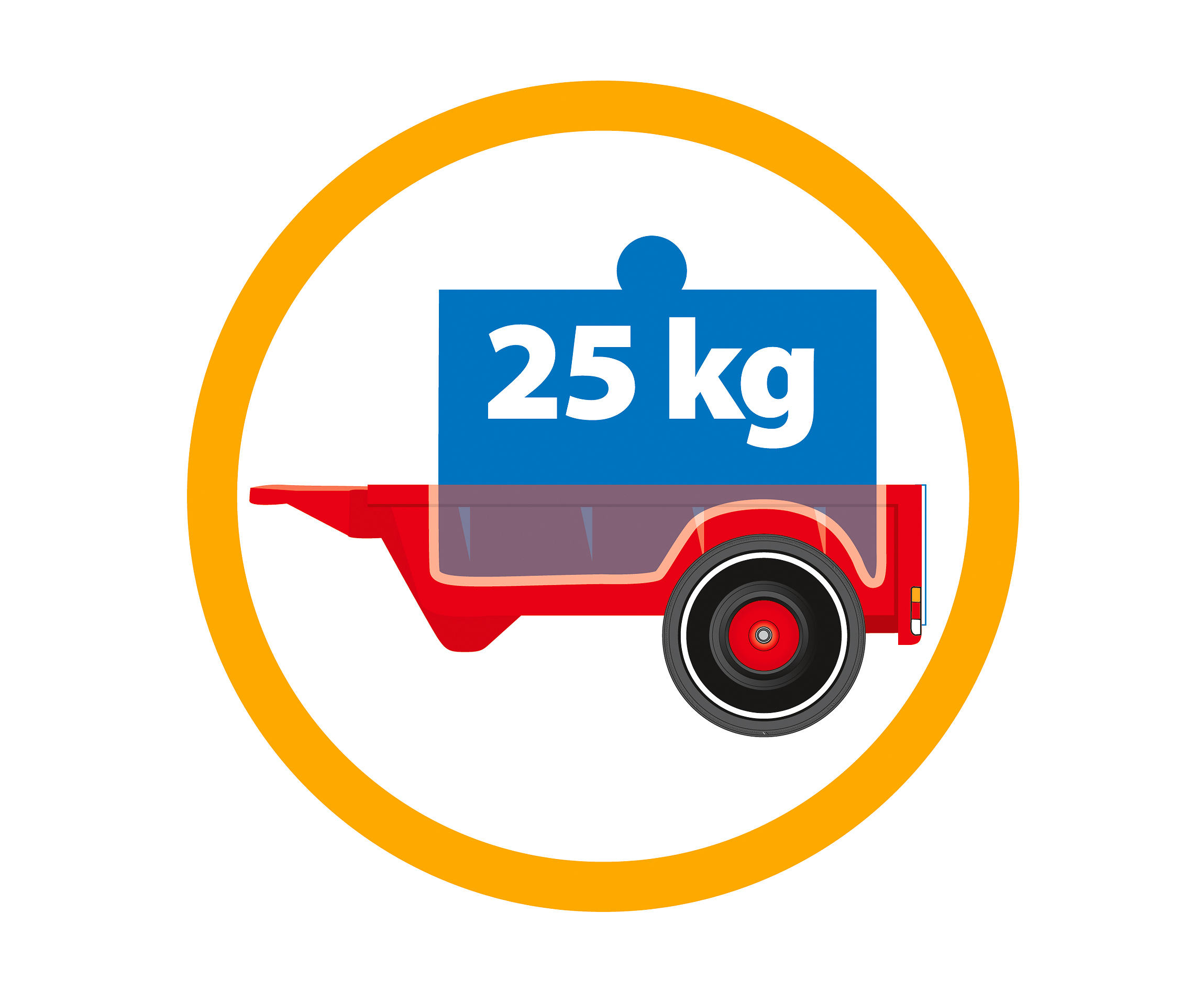 Achtung! Mindestalter 12 Monate, Tragkraft max. 25 kg, Nicht zum Personentransport geeignet.