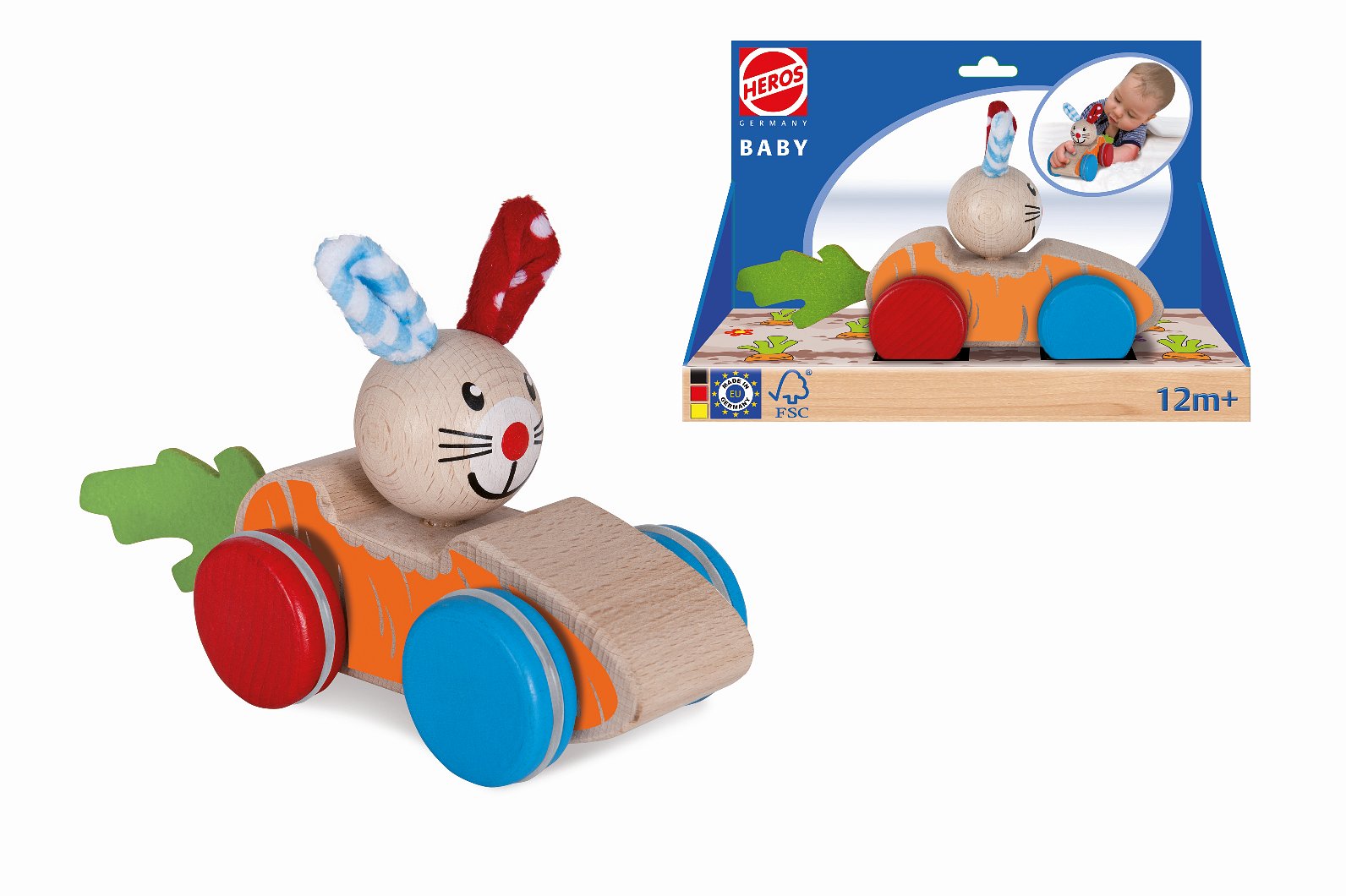 Das süße Schiebetier als Hase von Heros animiert Babys zu den ersten Krabbelversuchen. Die Gummiringe an den Rädern garantieren festen Halt auch auf glatten Oberflächen. Der Hase hat weiche Plüschohren und das Korottenkraut ist aus weichem Filz. Für Kinder ab einem Jahr geeignet. Größe ca. 20 x 7,5 x 11,5 cm