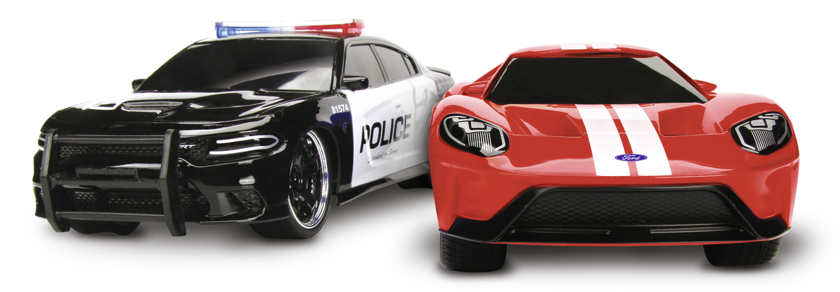 - Mit dem Fahrzeug-Set erhalten kleine Rennfahrer gleich zwei der beliebtesten Modelle. Das RC Twin Pack im Maßstab 1:16 (ca.29 cm) von Dickie Toys enthält den 2015 Dodge Challenger SRT Hellcat und den 2017 Ford GT.