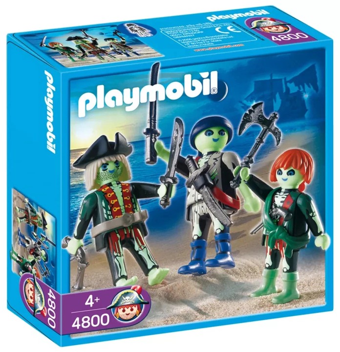 Aufgeregt schmieden die Geisterpiraten Pläne für ihren nächsten Raubzug: jetzt geht es mit dem Geisterpiratenschiff (Art. 4806 nicht enthalten) auf Kaperfahrt! Sobald sie ein lohnendes Angriffsziel gesichtet haben, stoßen auch die Dreiköpfige Seeschlange (Art. 4805, nicht enthalten) und der Rochenreiter (Art. 4801, nicht enthalten) zu ihnen - dieser Streitmacht wiedersteht keiner! Schon bald werden sie reich beladen mit Schätzen zum Geisterwalskelett (Art. 4803, nicht enthalten) zurückkehren...