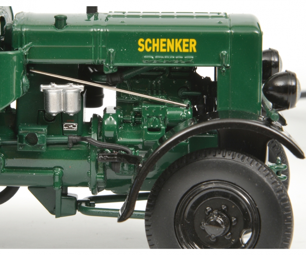 Serienmäßig war dieser Alleskönner mit einer Riemenscheibe und einem Zapfwellenantrieb angeboten. Der aufgrund seiner einfachen und robusten Konstruktion sehr langlebige und technisch zuverlässige F3 M417 wurde nach Kriegsende in fast unveränderter Form weiterproduziert und war gerade als Straßenschlepper bis Ende der 70er-Jahre im Einsatz. Schuco präsentiert den Deutz F3 mit einem Umzugs-Anhänger der Spedition Schenker im Maßstab 1:32. Die Schuco Edition 1:32 überzeugt durch ihre sehr detaillierte und präzise Umsetzung. Der Traktor verfügt über eine funktionierende Lenkung und darf in keiner Traktorensammlung fehlen.