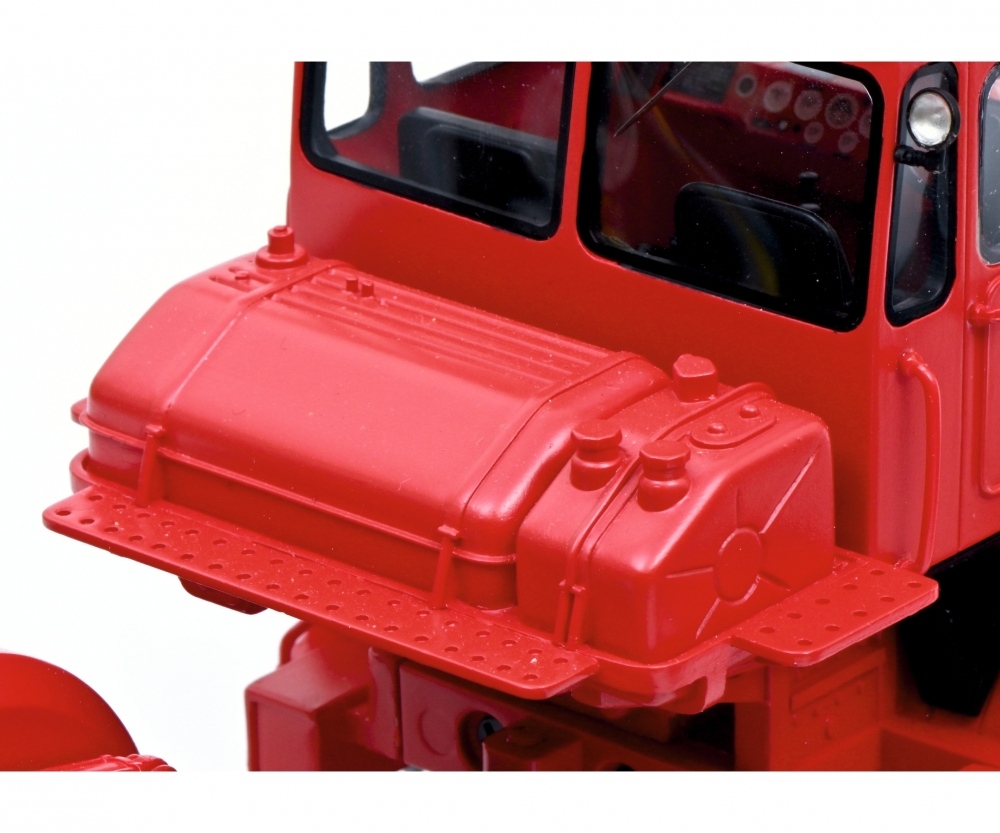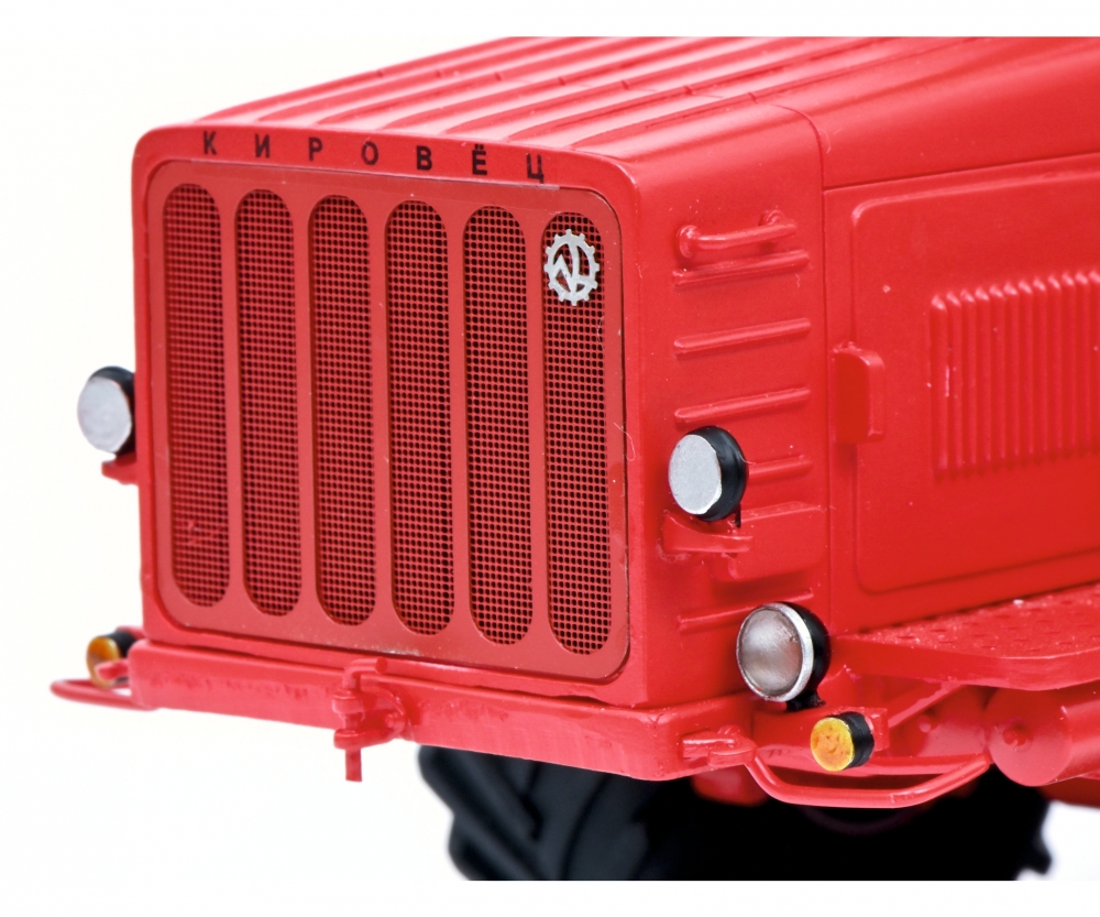 Der schwere Allradtraktor Kirovets K-700 nimmt, schon aufgrund seiner Ausmaße, eine Sonderstellung auf jedem Traktorentreffen und natürlich auch in jeder Traktoren-Modellsammlung ein. Ab dem Ende der 50er- Jahre vom russischen Hersteller Kirovets entwickelt, verließ im Juli 1962 der erste Prototyp des K-700 das Werkstor in Leningrad. Zwischen 1962 und 1975 wurden deutlich über 100.000 Exemplare des K-700 produziert. Der mit einem 8-Zylinder-Dieselmotor ausgestattete und 215 PS starke Knicklenker wurde ab 1968 in nicht unerheblichen Stückzahlen auch in die damalige DDR exportiert. Für seine extreme Zuverlässigkeit bekannt und speziell auf großen landwirtschaftlichen Flächen sehr effizient, konnte durch den Einsatz eines K-700 gegenüber dem Fortschritt ZT 300 die Arbeitsproduktivität um das Dreifache gesteigert werden. Um in der staatlich gelenkten Landwirtschaft der DDR einen Kirovets K-700 wirtschaftlich sinnvoll einsetzen zu können war es jedoch notwendig, einzelne Felder zu Großflächen zusammenzufassen. So errechnete man auch, dass ein K-700 mindestens 1400 Arbeitsstunden pro Jahr ableisten musste um rentabel zu sein. Da dies im Einschichtbetrieb unmöglich war, führte man für die mit dem K-700 ausgestatteten LPG‘s (Landwirtschaftliche Produktionsgemeinschaften) ein Zweischichtsystem ein.