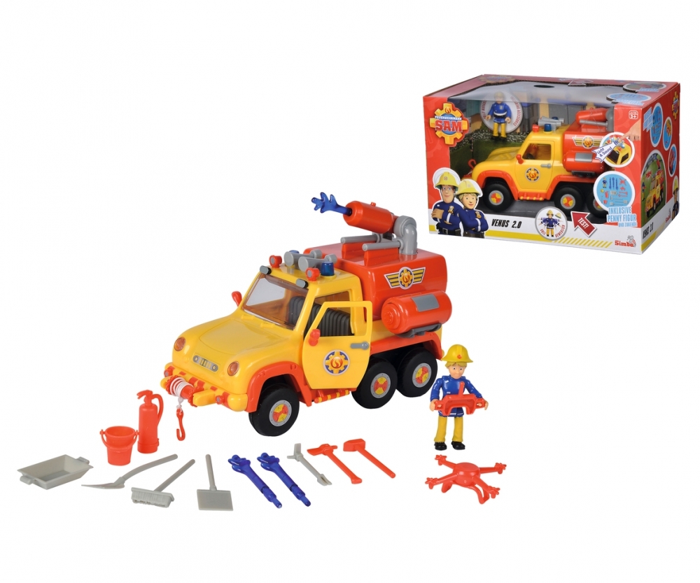 • Einsatzfahrzeug – das Feuerwehrauto Venus ist ein beliebtes Einsatzfahrzeug von Feuerwehrmann Sam und seinem Team in Pontypandy und hat in der Serie ein neues Aussehen erhalten. Venus 2.0 hat neue frische Farben und größere Räder.