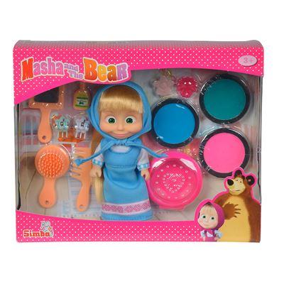 Die süße 12cm große Mascha aus der Serie „Mascha und der Bär“ mit 3 verschiedenen Farbkreiden in pink, blau und türkis für die Haare und viel weiterem Zubehör. Die Farben sind mit Wasser auswaschbar.