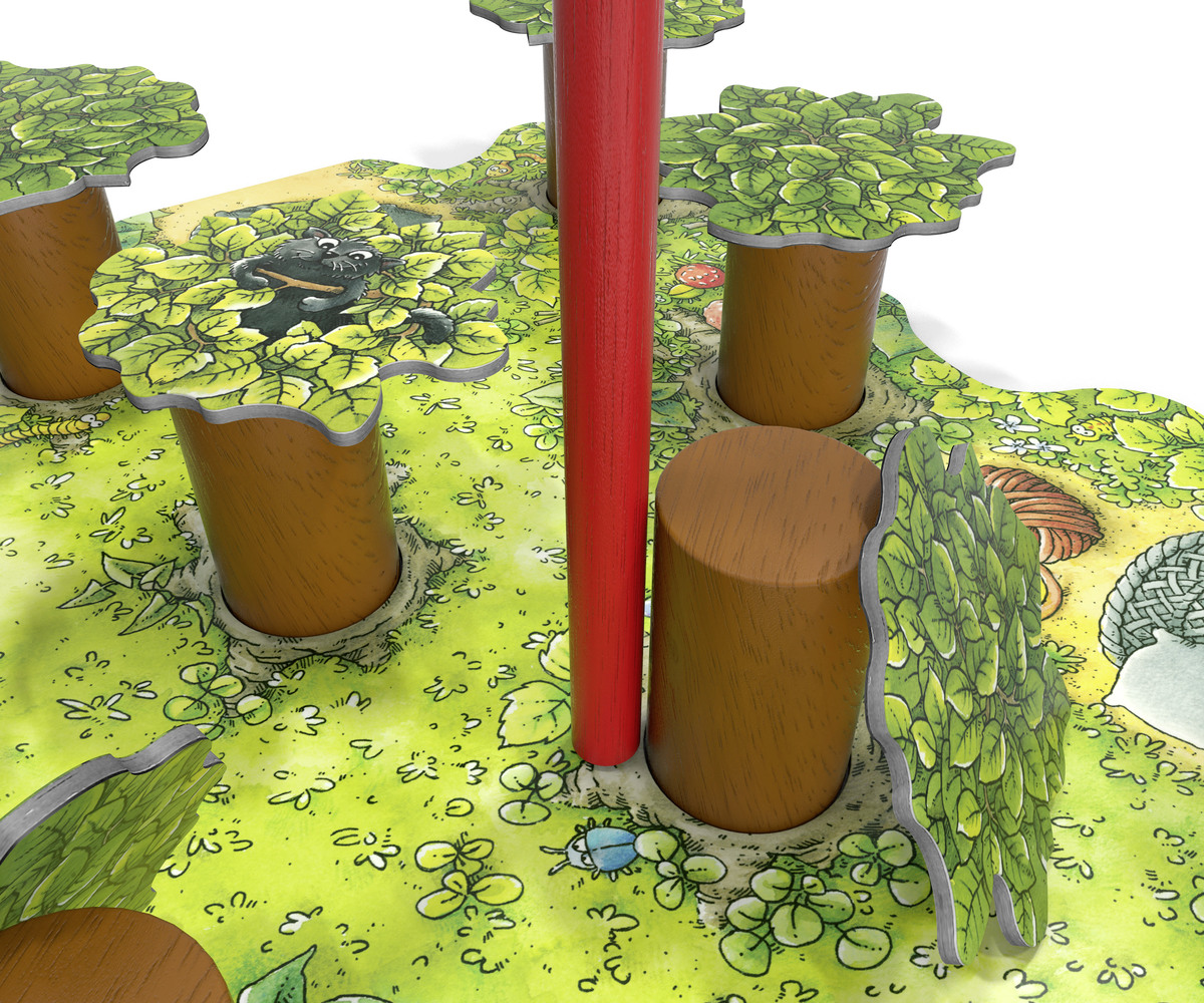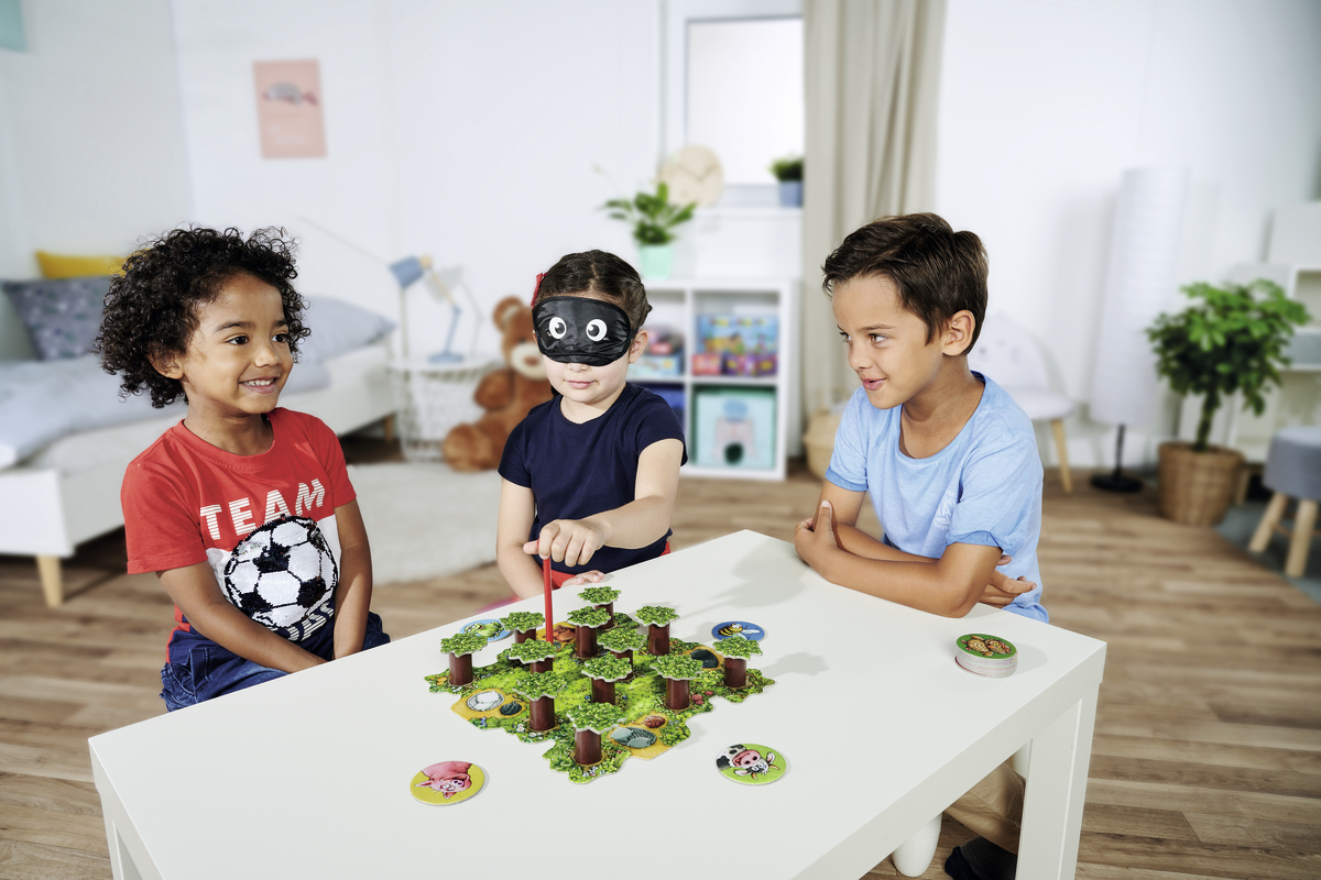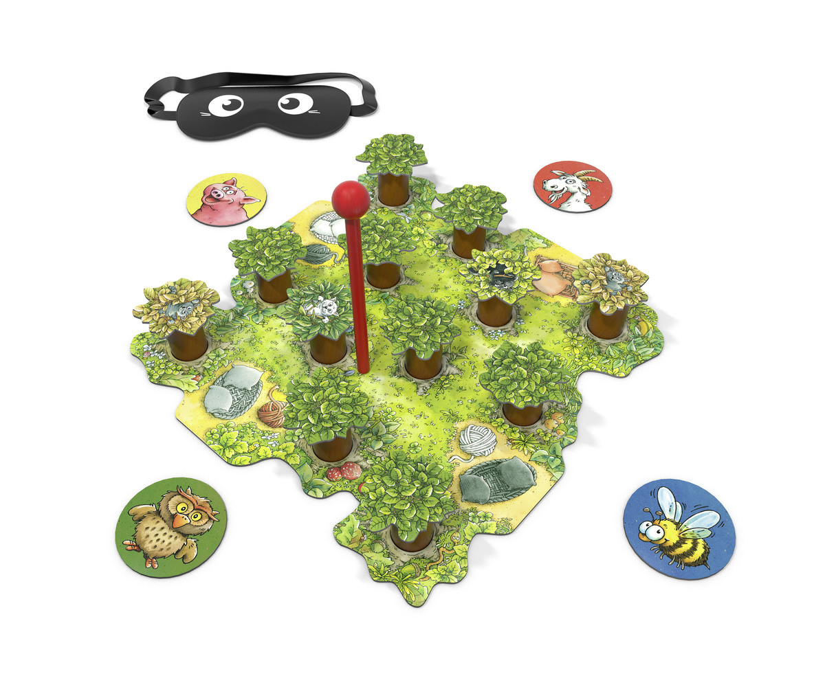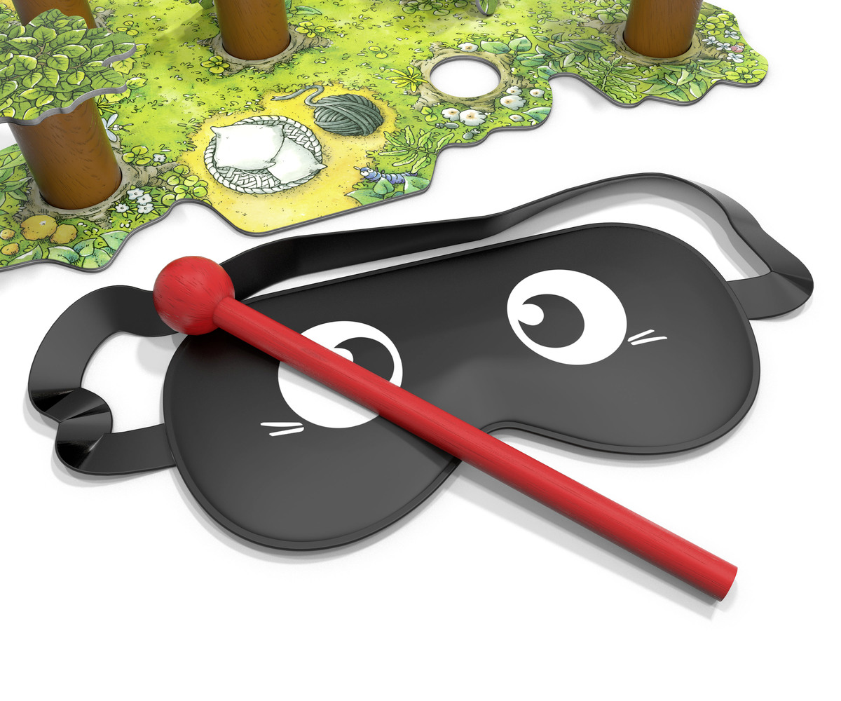 Gemeinsam bringen die Spieler Katzen aus dem Wald zurück in ihre Körbchen. Doch im Wald ist es dunkel. Mit verbunden Augen führt ein (wechselnder) Spieler seinen Wanderstab durch das unwegsame Gelände. Die anderen Spieler lotsen ihn mit Tierstimmen dorthin, wo die Katzen sich verirrt haben. Doch jeder falsche Kontakt kann dazu führen, dass störende Äste auf den Waldboden fallen. Genaues Hinhören ist gefragt: Aus welcher Richtung bellt der Hund, wie lange meckert die Ziege und wohin weist der Uhu den Weg? Nur durch aufmerksames Miteinander können die Katzen von den Bäumen geholt werden, ohne den Baumkronen zu schaden. Varianten für Kinder ab 5 und 6 Jahren ermöglichen das Kräftemessen mehrerer Teams und stellen höhere Anforderungen an das Zuhören und die gemeinsame Abstimmung der Bewegungen.